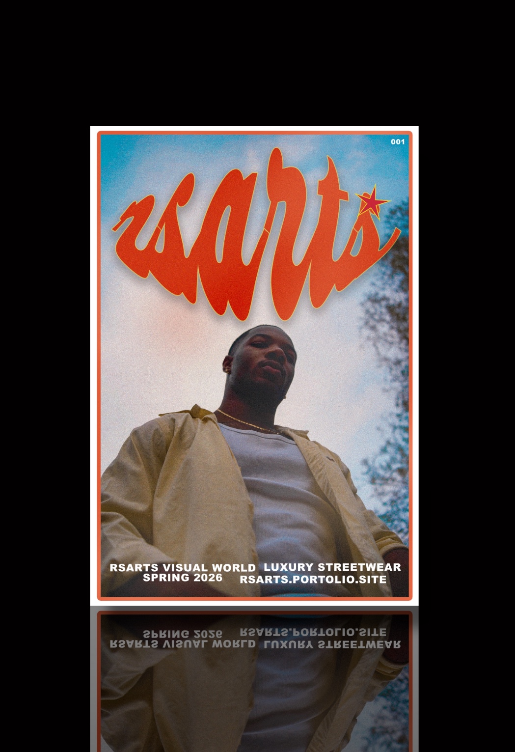 RSARTS magazine cover mockup as a luxury streetwear editorial concept featuring bold vintage type, a cinematic low-angle portrait to set the tone for Spring 2026.